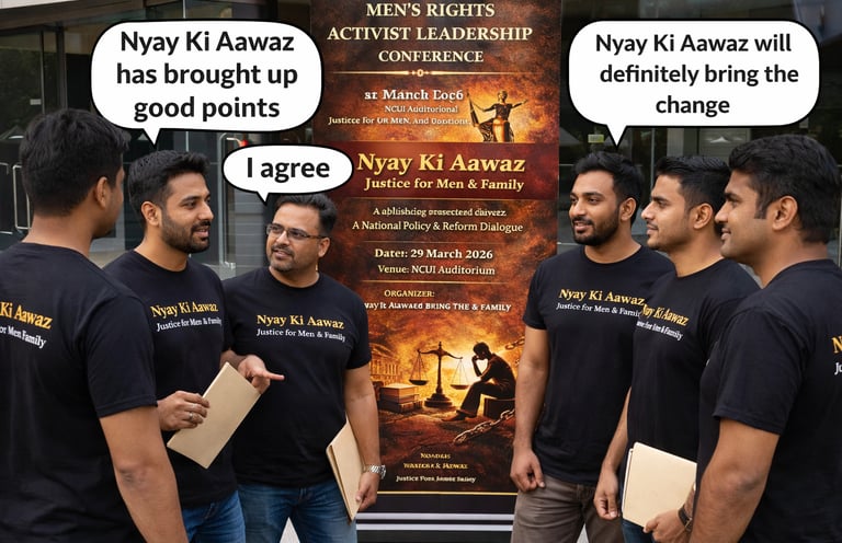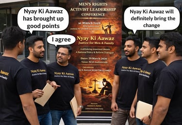 The Men’s Rights Activist Leadership Conference is a national platform organized by Nyay Ki Aawaz – Justice For Men & Family that brings together activists, legal experts, policymakers, and citizens to discuss judicial reforms, legal balance, and social awareness related to men and family justice issues.